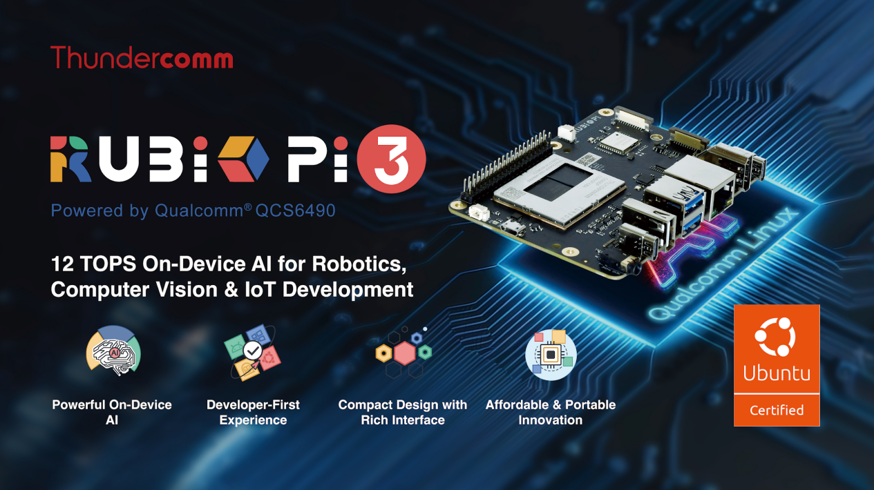 RUBIK Pi 3 Now Ubuntu-Certified: Powering Next-Gen Edge IoT Development with Qualcomm and Thundercomm24/04/2026 Read More >