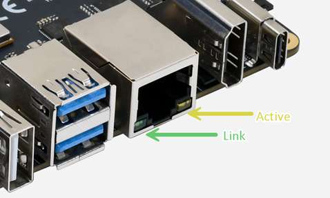 魔方派 3提供标准RJ45接口,带Link及Active 指示灯,最高支持1000 Mbps全双工,同时向下兼容100/10 Mbps ,可自动协商。