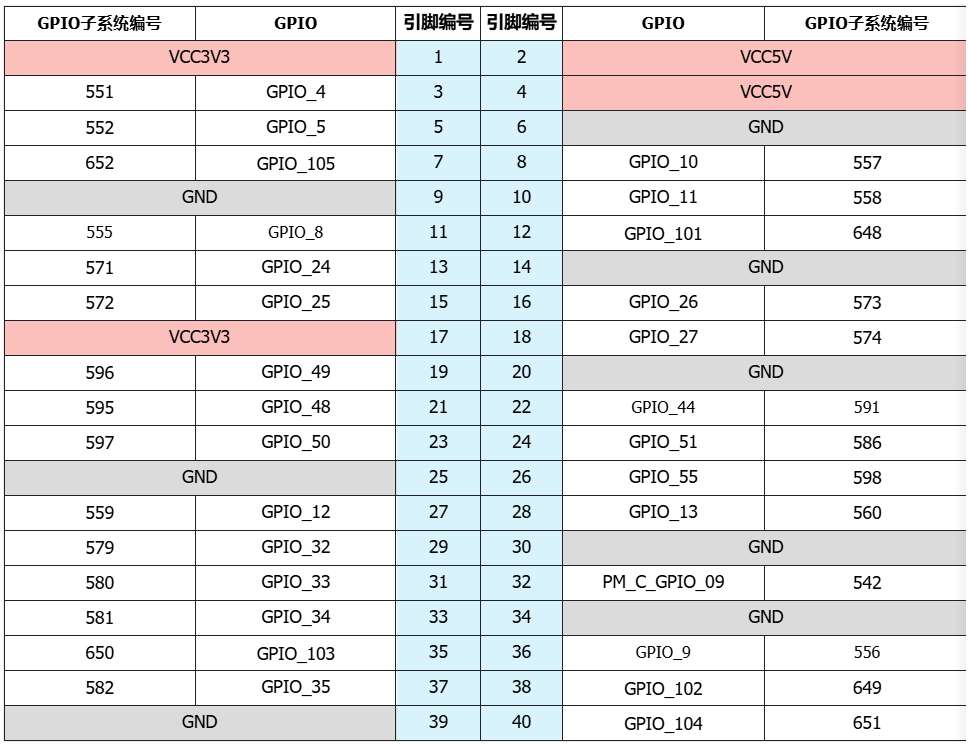 操作 /sys/class/gpio 下相关节点 GPIO 子系统的编号如下表。