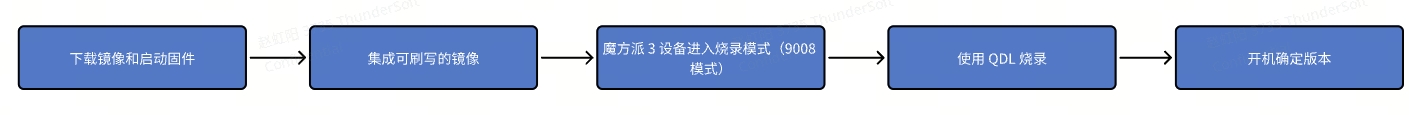 在终端中使用以下命令根据主机架构运行 QDL_Win_x64 或 QDL_Win_ARM64 目录中的 QDL 可执行文件, 进行镜像烧录。烧录完成后设备自动启动。请确保位于