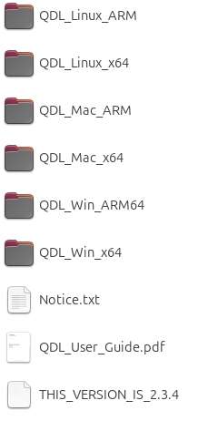 点击此处下载 QDL,下载完成后解压,文件内容如下所示,QDL 支持多平台多架构,可通过查看 QDL_User_Guide.pdf 了解 QDL 的使用方法。