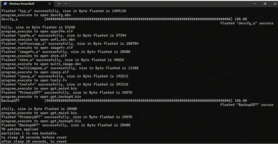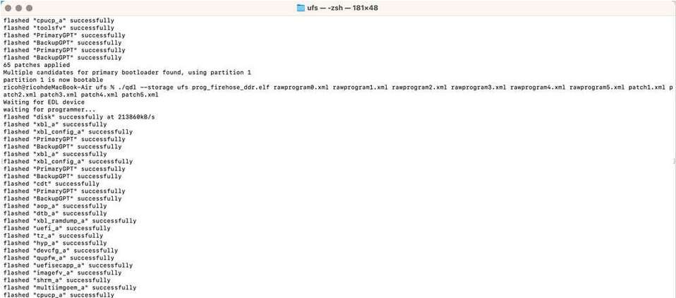 ./qdl --storage ufs prog_firehose_ddr.elf rawprogram*.xml patch*.xml