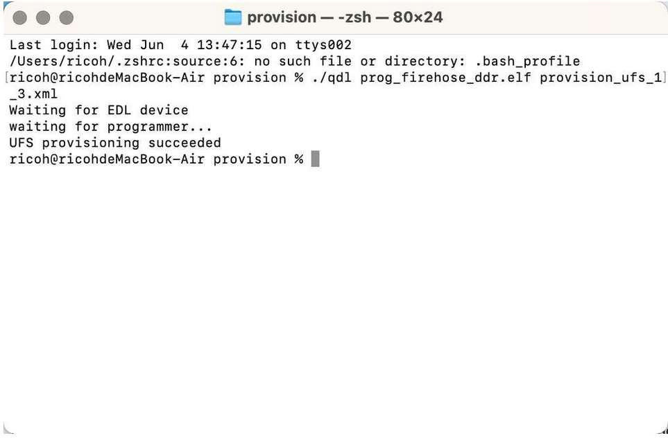 ./qdl prog_firehose_ddr.elf provision_ufs_1_3.xml