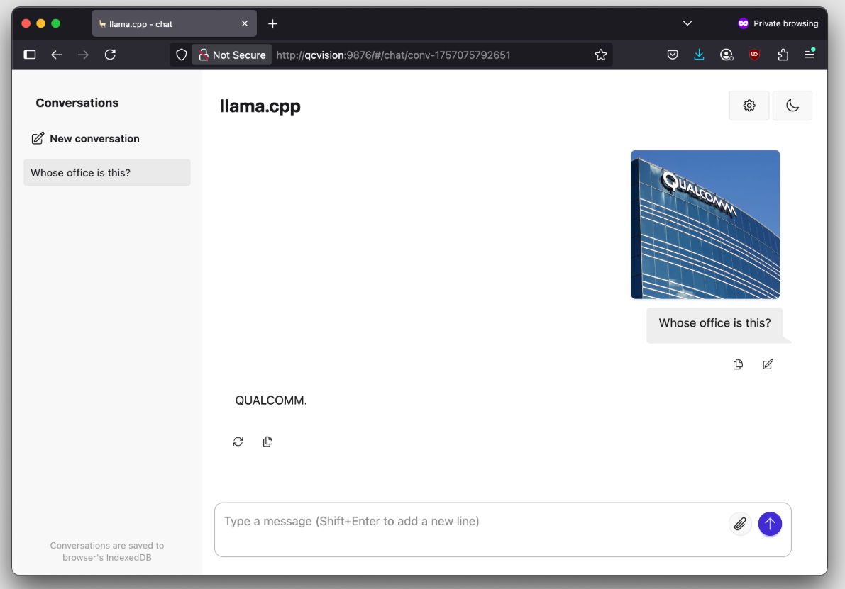llama-server -m ./SmolVLM-500M-Instruct-q4_0-pure.gguf --mmproj ./mmproj-SmolVLM-500M-Instruct-f16.gguf --no-warmup -b 128 -c 2048 -s 11 -n 128 --host 0.0.0.0 --port 9876