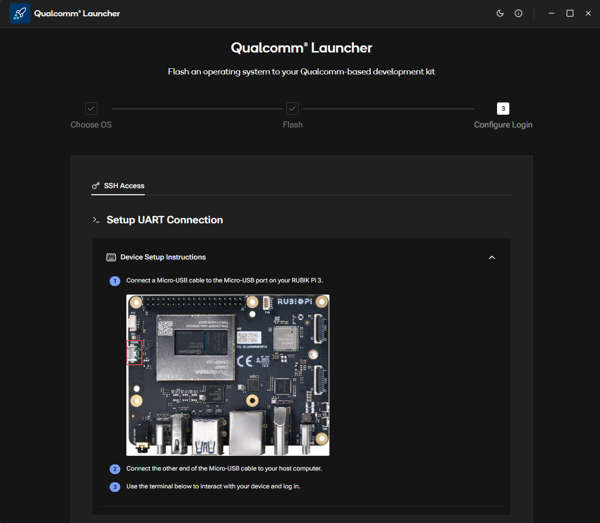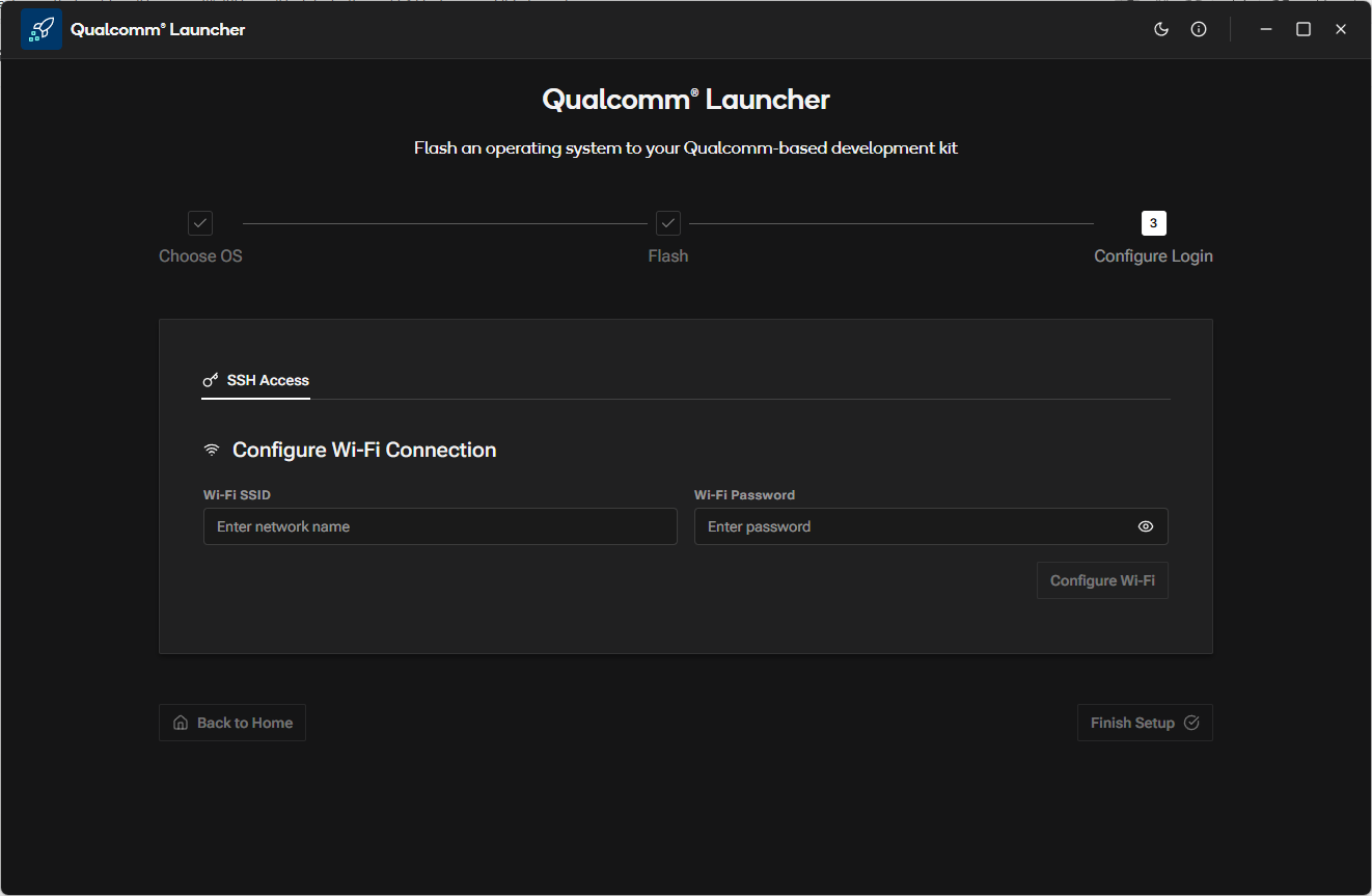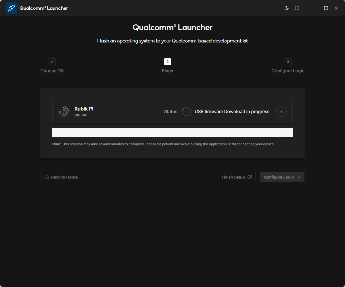 Qualcomm® Launcher is a user-friendly, GUI-based tool designed to simplify the process of downloading and flashing operating systems onto Qualcomm®-based development kits. This section provides step-by-step guidance to flash the Renesas USB firmware and replace the existing OS with a certified Canonical Ubuntu 24.04 server image.