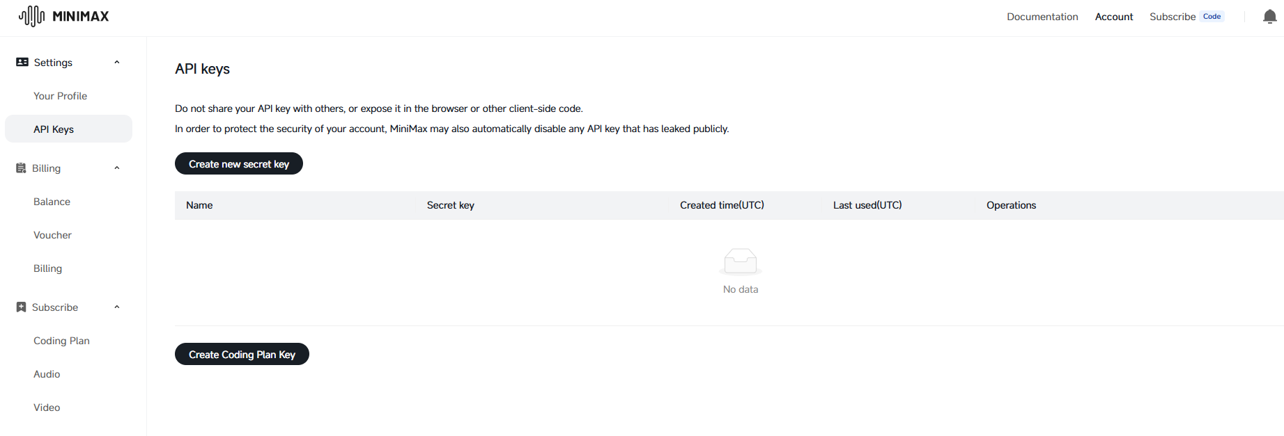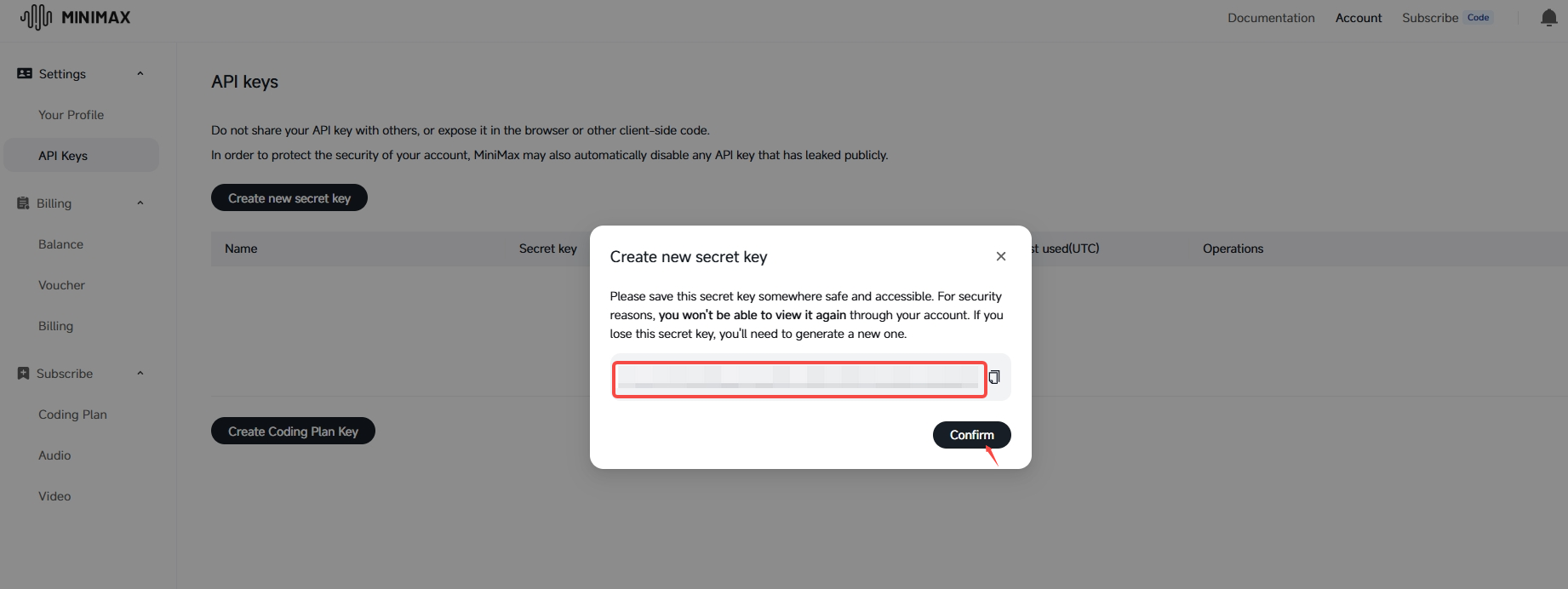 Visit the MiniMax Open Platform, register an account and log in.