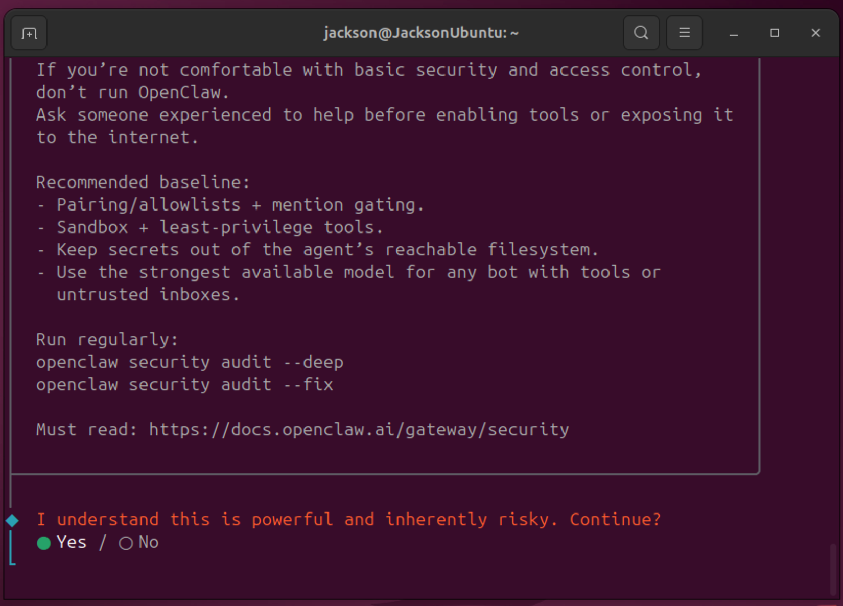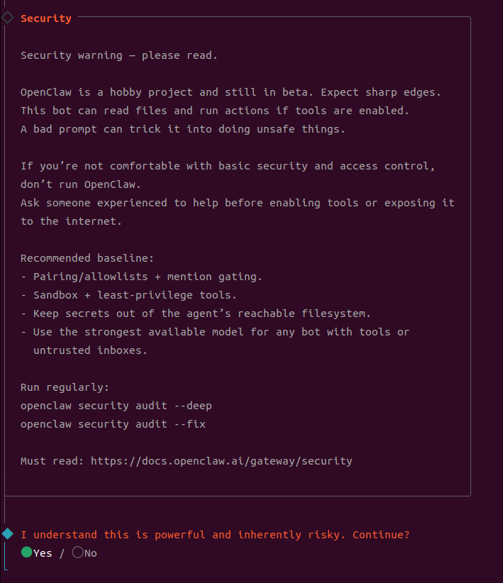 After installation, the configuration wizard will start automatically. If it doesn't appear, run openclaw onboard