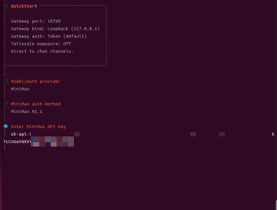 | 4 | Enter MiniMax API Key | Enter the API Key you obtained in the prerequisites |
