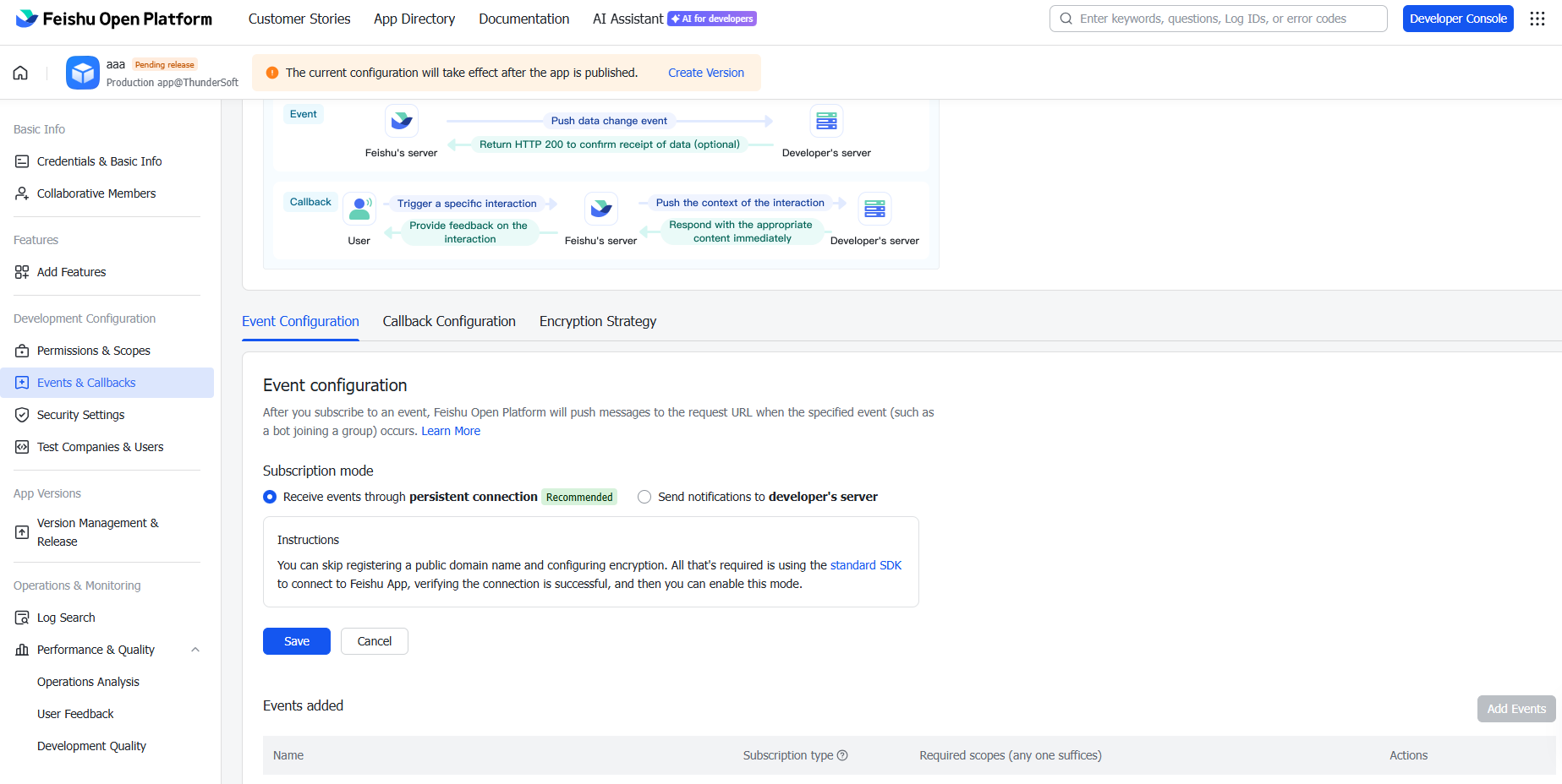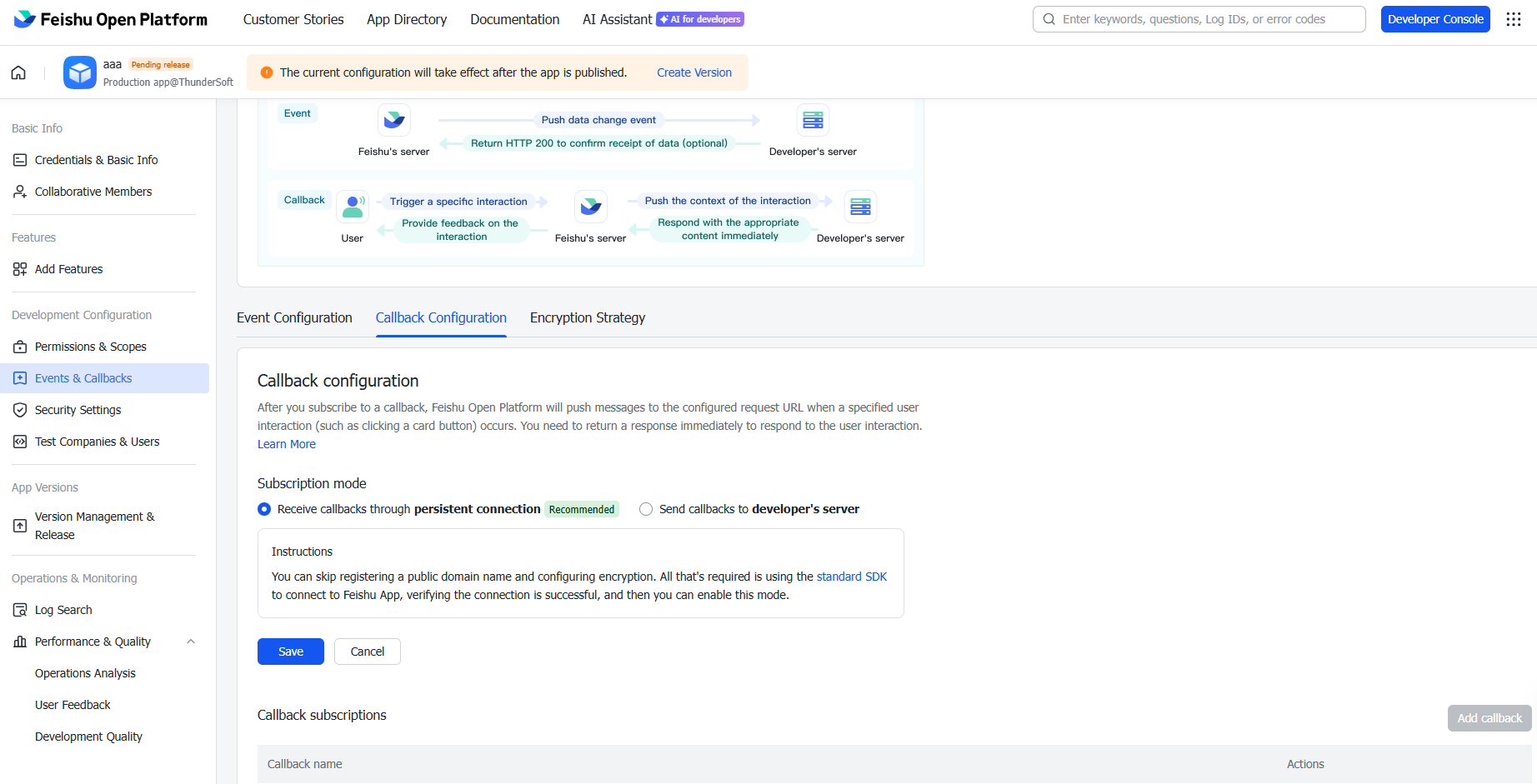 A: Yes. Set "domain": "feishu" for the China version and "domain": "lark" for the international version. You can also run multiple Feishu/Lark apps with different configurations.