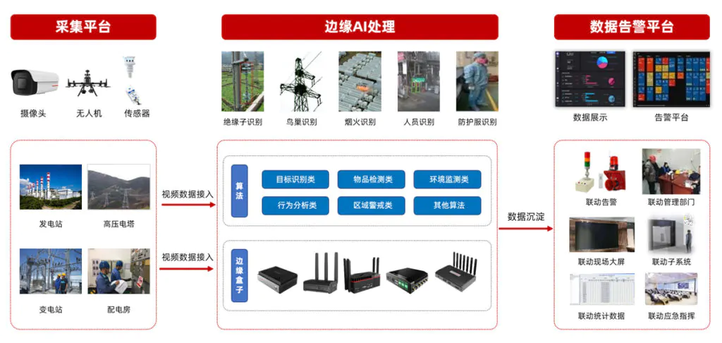 创通联达面向电力运维巡检场景提供算法算力一体化智慧巡检方案。利用边缘计算和人工智能视频分析,实现对电力巡检运维、电力作业过程中人员行为、环境安全、设备状态等实时监测,由“事后”追踪升级为“事前”预警、“事中”告警,实现电力巡检少人化、无人化,提高巡检效率并降低事故风险及运营成本。